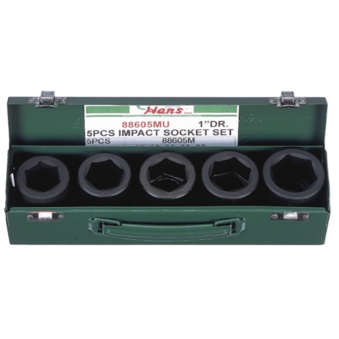 Set tubulara de impact HANS omogen 1 inch 25.0 mm scurt hexagonal in cutie metalica 5.0 buc