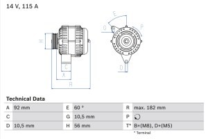 Alternator BOSCH 14V 115A pentru MERCEDES E T-MODEL (S210), E (VF210), E (W210) 2.0D-3.0D 06.95-03.02