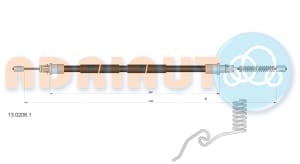 Cablu frana de mana Spate Dreapta (1280mm/990mm) se potrivește: FORD TRANSIT 2.0D-2.4D 01.00-05.06