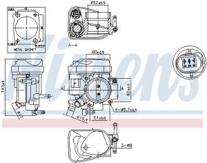 Carcasa clapeta NISSENS pentru CHEVROLET CRUZE, OPEL ASTRA H, VW EOS 1.6-2.0, dimensiuni 145x99x128 mm, cu garnituri, electric, 12V