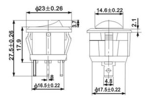 Comutator AKUSAN 3 pini rosu 12.0 V