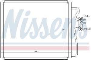 Condensator climatizare Nissens BMW E38 aluminiu 418mm x 500mm x 16mm fără uscător agent frigorific R134a
