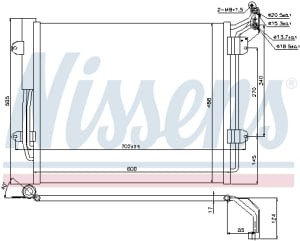 Condensator climatizare NISSENS A/C cu uscător pentru SEAT ALHAMBRA, VW SHARAN 1.4/2.0/2.0D 05.10-12.22, dimensiuni 488x600x17 mm