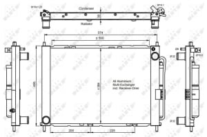 Condensator climatizare NRF aluminiu Renault Twingo II Wind 1.2/1.5D/1.6 03.07- cu uscator 384x500x38 mm M10x1,25