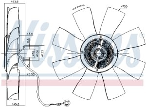 Cupla ventilator radiator NISSENS, 750mm, 8 palete, 2 pini, compatibil SCANIA G I, P I, R I, T DC11.08-DT16.08 01.03-05.19