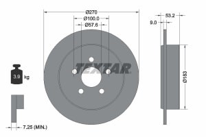 Disc frana Spate Dreapta/Stanga 171.9 mm interior, 270.0 mm exterior, inaltime 53.2 mm, grosime 9.0 mm, 5 gauri, TEXTAR