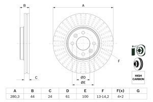 Disc frana BOSCH Fata Dreapta/Stanga DACIA DOKKER, DOKKER EXPRESS/MINIVAN, LODGY, RENAULT CAPTUR I, CLIO II, III, V, GRAND SCENIC II, KANGOO