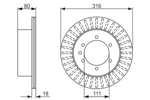 Disc frana BOSCH Spate Dreapta/Stanga pentru NISSAN PATROL GR IV, GR V, GR III 2.8-4.5 07.80, Diametru exterior 316.0 mm, Inaltime 80.0 mm