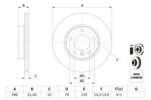 Disc frana BOSCH Fata Dreapta/Stanga 286.2 mm, 51.6 mm, 22.0 mm pentru BMW 3 (E36, E46), Z3 (E36), Z4 (E85) 1.6-3.0 09.90-02.09