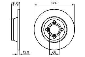 Disc frana BOSCH Fata Dreapta/Stanga AUDI 80 B4 1.6/1.9D/2.0 09.91-01.96 Diametru exterior 280.0 mm Inaltime 56.0 mm Grosime 13.0 mm