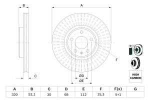 Disc frana BOSCH Fata Dreapta/Stanga AUDI A4 ALLROAD B8 A4 B8 A5 A6 C7 A7 Q5 1.8-4.0 320.0 mm 52.1 mm 30.0 mm 5 gauri