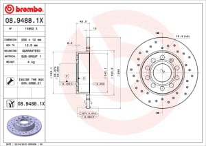 Brake disc, BREMBO Xtra, 1pcs, Drilled, rear ; L/R, outer diameter 256 mm, thickness 12 mm, fits: AUDI A3; SEAT ALTEA, ALTEA XL, TOLEDO III; SKODA OCTAVIA I, OCTAVIA II 1.2-3.6 09.00-08.20