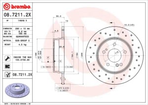 Brake disc, BREMBO Xtra, 1pcs, Drilled, rear ; L/R, outer diameter 290 mm, thickness 10 mm, fits: MERCEDES C (CL203), C (W202), C (W203), C T-MODEL (S203), CLC (CL203) 1.8-4.3 06.93-06.11
