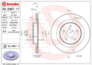 Disc frana spate ventilat intern BREMBO 317mm 5 gauri SUZUKI ACROSS TOYOTA RAV 4 V 2.0/2.5/2.5H 12.18-