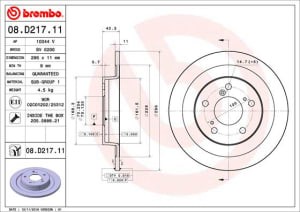 Disc Frana Spate Dreapta/Stanga BREMBO Honda Civic IX 2.0 08.15- Diametru 296mm Grosime 11mm 5 Gauri 42mm Inaltime
