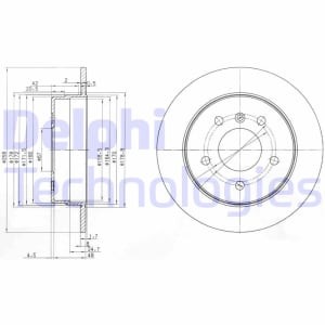 Set discuri frana 2 buc Spate Dreapta Stanga MERCEDES A W168 VANEO 414 1.6-2.1 Diametru exterior 258 mm Inaltime 55 mm 5 gauri DELPHI