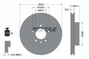 Disc frana Fata Stanga TEXTAR 330.0 mm 68.5 mm 32.0 mm pentru PORSCHE CAYENNE VW TOUAREG 2.5D-5.0D 09.02-03.18