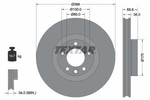 Disc frana TEXTAR Fata Dreapta/Stanga Porsche Cayenne VW Touareg 3.0D-6.0 09.02-09.10 Diametru 368mm Grosime 36mm Ventilat Intern