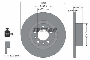 Disc frana TEXTAR Spate Dreapta/Stanga Peugeot 508 I 1.6-2.2D 11.10-12.18 Diametru 290mm Inaltime 59mm Grosime 12mm 5 Gauri