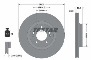 Disc frana Fata Dreapta/Stanga Hyundai Elantra VII 1.6 03.20-, Diametru 305mm, 5 Gauri, Ventilat Intern, Grosime 25mm