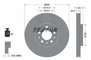 Disc Frana TEXTAR Fata Dreapta/Stanga ALFA ROMEO GIULIA 2.0/2.2D 305mm 5 Gauri Ventilat Intern 10.15-