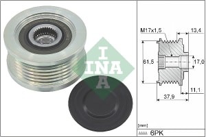 Fulie alternator INA pentru ALFA ROMEO 145, 146, 156; FIAT BRAVA, DOBLO, PUNTO; LANCIA KAPPA, LYBRA 1.9D/2.4D, diametru 17.0 mm, 61.5 mm, latime 37.9 mm