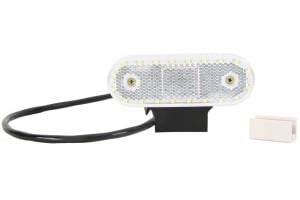 Outline marker lights L/R, shape: oval, white, LED, height 40mm; width 114mm; depth 25mm, hang, hose length 500, with hanger, 12/24V (with clip for flat wire, connector: CLICK-IN/JAEGER)
