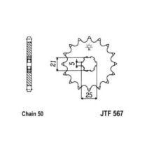 Pinion lant JT ZĘBATKI otel tip lant 520 15 dinti pentru KAWASAKI EX NINJA Z 250/300 2008-2018, latime 9.3 mm, diametru 25 mm