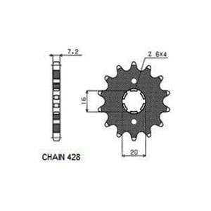 Pinion lant SUNSTAR otel fata tip 428 14 dinti pentru YAMAHA AG RD SR XT XTZ YBR 125 200 1982-2012