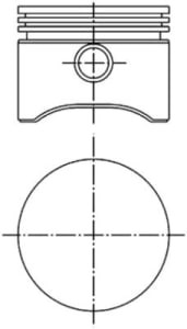 Piston compresor KOLBENSCHMIDT diametru 75mm STD lungime 57mm alezaj 75mm inaltime compresie 28mm bolt 15mm lungime bolt 50mm