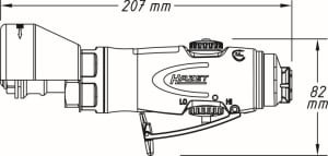 Mini-polizor unghiular pneumatic 76mm, 2000-18000 rot/min, 207mm lungime, 114l/min eficiență, 6.3 bar presiune de lucru