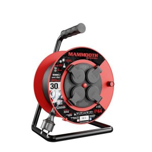 Prelungitor electric tambur plastic 30m 230V 3x1,5mm² 4 prize F schuko 1380/3680W IP44 MAMMOOTH
