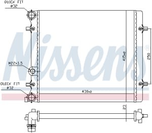 Radiator racire motor NISSENS SEAT LEON TOLEDO II SKODA OCTAVIA I VW BORA GOLF IV 1.4 1.6 430 mm x 415 mm x 23 mm