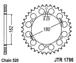 Roata dintata JT ZĘBATKI pinion spate 46 dinti 162.0 mm diametru interior 180.0 mm spatiere gauri montare 6 gauri 8.5 mm diametru gaura