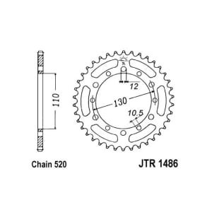 Roata dintata JT ZĘBATKI pinion spate 41 dinti 110.0 mm diametru interior 130.0 mm spatiere gauri montare otel 520 tip lant