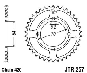 Roata dintata JT ZĘBATKI pinion spate 40 dinti 54.0 mm diametru interior 70.0 mm spatiere gauri montare 8.5 mm diametru gaura