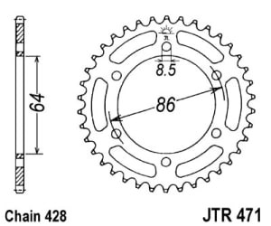 Roata dintata JT ZĘBATKI pinion spate 50 dinti 64.0 mm diametru interior 86.0 mm spatiere gauri 8.5 mm diametru gaura tip lant 428