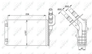 Schimbator caldura incalzire habitaclu NRF 77 01 044 RENAULT CLIO 3/98 Inaltime 157 mm Latime 234 mm Grosime 42 mm