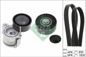 Set curea transmisie cu caneluri INA pentru BMW 1 (E87), 3 (E90), 3 (E91) 2.0D, lungime 830 mm, 1835 mm, 6 nervuri, 2 curele