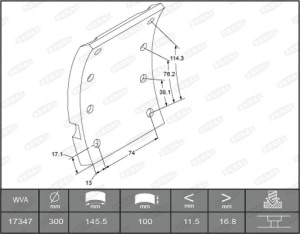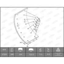 Set garnituri frictiune frana tambur BERAL Ferodou sabot frana 300x100 1-supradimensionat 64 nituri 8x15 300mm 145mm 100mm 18mm