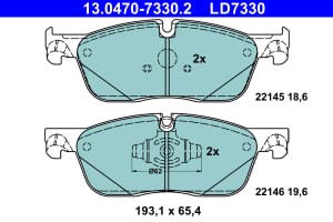 Set placute frana ATE fata ceramica JAGUAR E-PACE LAND ROVER DISCOVERY SPORT RANGE ROVER EVOQUE 1.5H-2.2D 06.11 65.4 mm 193.1 mm 18.6 mm