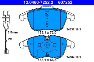 Set placute frana fata ATE pentru CITROEN C5 III, PEUGEOT 407, 407/KOMBI 1.6-2.0D, inaltime 66.5 mm, latime 155.1 mm, grosime 19.3 mm