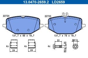 Set placute frana spate ATE cu suruburi etrier pentru MERCEDES G (W463), GLE (C167), GLE (V167), GLS (X167) 2.0D-4.0H 01.18-