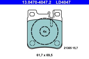 Set placute frana ATE ceramica spate MERCEDES C (CL203), C T-MODEL (S202, S203), C (W202, W203), CLK (A208, A209, C208, C209) 69.5x61.7x15.7 mm
