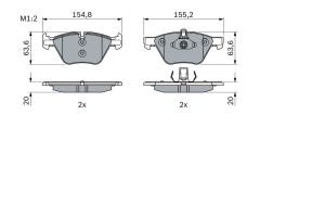 Set placute frana fata BOSCH pentru BMW 3 (E90, E91, E92, E93), X1 (E84), Z4 (E89) 2.0-3.0D 12.04-08.16, dimensiuni 63.6x154.8x20.0 mm