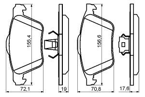 Set placute frana fata BOSCH VOLVO S60 I V70 II XC70 I XC90 I 2.0-4.4 11.99-12.14 71.3mm 155.4mm 19.7mm