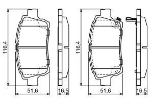 Set placute frana fata BOSCH pentru TOYOTA BB I, CELICA, COROLLA, PRIUS, YARIS, dimensiuni 51.6 mm x 116.4 mm x 16.5 mm