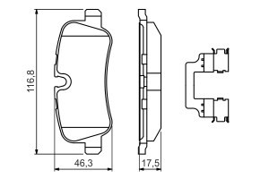 Set placute frana spate BOSCH pentru LAND ROVER DISCOVERY III IV RANGE ROVER III SPORT I 2.7D-5.0 46.4mm x 116.7mm x 17.4mm