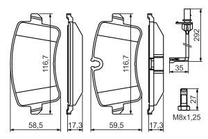 Set placute frana Spate BOSCH AUDI A8 D4 2.0-4.2D 11.09-01.18 58.5 mm x 116.7 mm x 17.3 mm