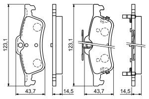 Set placute frana Spate BOSCH pentru HONDA CIVIC IX 1.4-2.2D 02.12-12.16, Inaltime 43.7 mm, Latime 123.3 mm, Grosime 14.5 mm